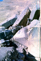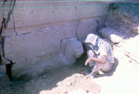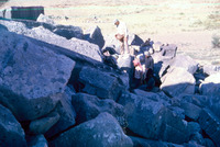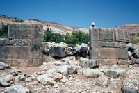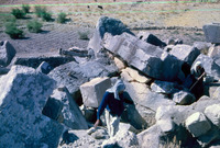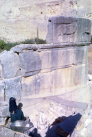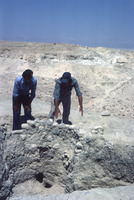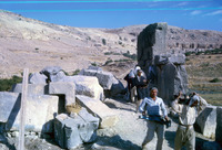 Jordan. Iraq al-Amir, Paul Lapp (top) at fallen blocks at north end of Qasr al-Abd
