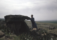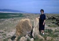 Jordan. Damiyeh dolmen field, Irene Lapp at dolmen