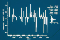 Long term environmental records, annual deviation in rainfall at Jerusalem from the mean 1851-1961