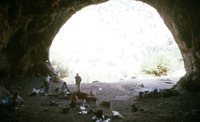 Jordan. Iraq ed-Dubb cave on south side of Wadi Yabis. View of interior of cave to west. Adele Tempest, Enzo Bellotti, Ruba Kana'an, Yacoub Oweis, unidentified female, Gaetano Palumbo, Ian Kuijt, Lori Phillips. Excavation of PPNA remains by Ian Kuijt