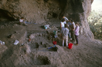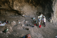 Jordan. Iraq ed-Dubb cave on south side of Wadi Yabis. View of interior of cave to west. People pictured: Adele Tempest, Enzo Bellotti, Ruba Kana'an, Yacoub Oweis, Gaetano Palumbo, Ian Kuijt, Lori Phillips. Excavation of PPNA remains by Ian Kuijt