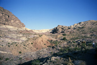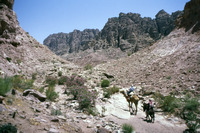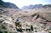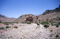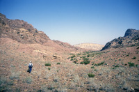Jordan. Petra, helicopter flight with Jane Taylor down to Wadi Sabra, Jane Taylor and Bdoul guide