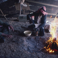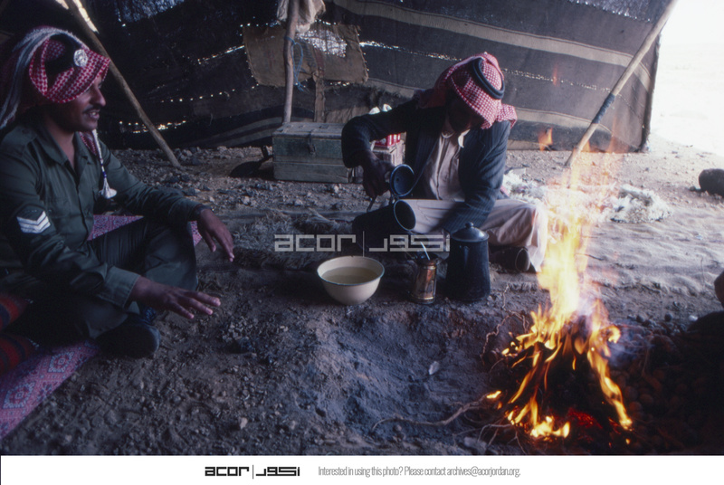 Jordan. Daily life, Bedouin men making coffee (Arabic Coffee/ Qahwa)