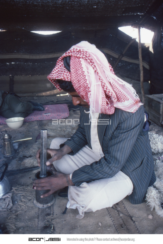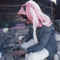 Jordan. Daily life, Bedouin men making coffee (Arabic Coffee/ Qahwa)