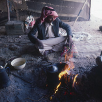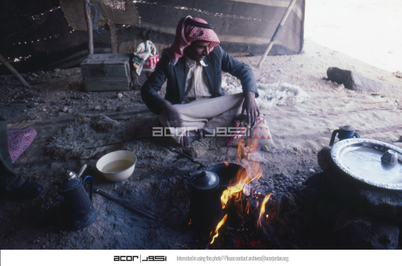 Jordan. Daily life, Bedouin men making coffee (Arabic Coffee/ Qahwa)
