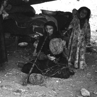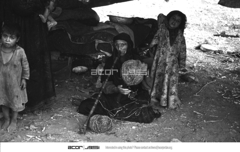 Jordan. Iraq al-Amir, family in tent and woman weaving
