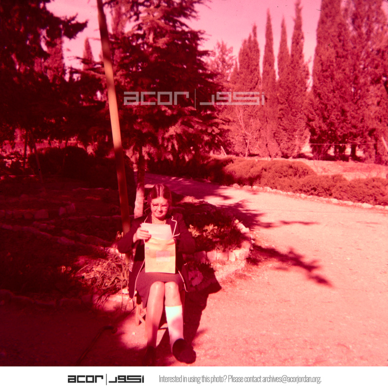 Jordan. Iraq al-Amir, Dorothy Hill outside ASOR