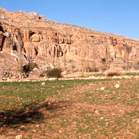 Jordan. Iraq al-Amir, view of cave and cliffs
