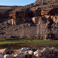 Jordan. Iraq al-Amir, view of cave and cliffs