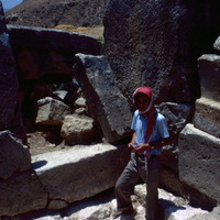 Jordan. Iraq al-Amir, Fawzi Zayadine in room where French found Hellenistic level