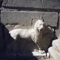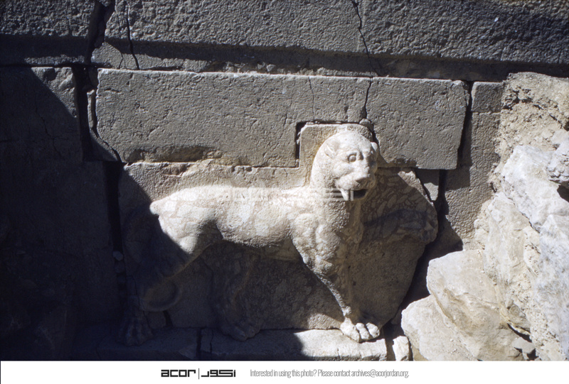 Jordan. Iraq al-Amir, Qasr al-Abd, closeup of feline fountain with wall removed