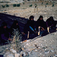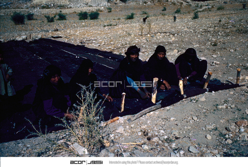 Jordan. Iraq al-Amir, ladies sewing Hussein's tent, adding new black hair strips
