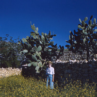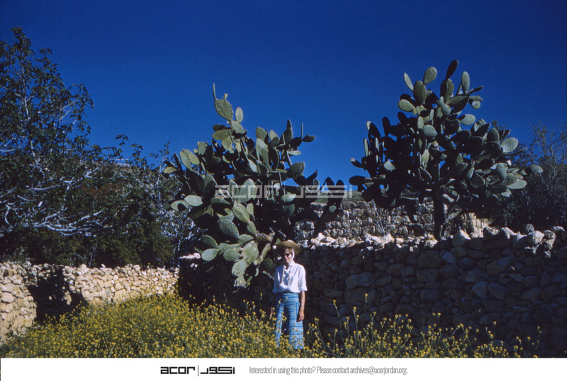Jordan. Iraq al-Amir, Mary Lou Huffmon and cacti at village halfway between camp and town