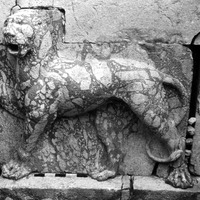 Jordan. Iraq al-Amir, feline fountain in Qasr al-Abd east wall