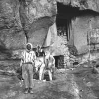 Pictured: unknown -- ‘Iraq al-Amir is situated on the west bank of the Wadi es-Seer, about 17 km west of Amman and 29 km. It is located about 4 km upstream from the confluence of the Wadi es-Seer with the Wadi Kafrein. The ‘Iraq al-Amir region includes a megalithic Hellenistic monumental building (Qasr al-‘Abd). Two hundred meters northwest of the ancient village are two tiers of natural caves, two of them with the name “Tobiah” deeply engraved near their entrances. (Ji, Chang-Ho C. “A New Look at the Tobiads in 'Iraq al-Amir” Liber Annuus 1998 v. 48 (XLVIII) p. 417.)