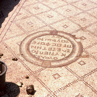 Jordan. Jerash, mosaic floor of church behind Hadrian's Arch (South Gate)