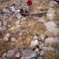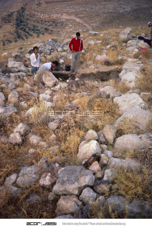 Jordan. Baq'ah Valley, Jabal al-Qesir. Excavating rectangular building and possible gate area