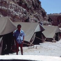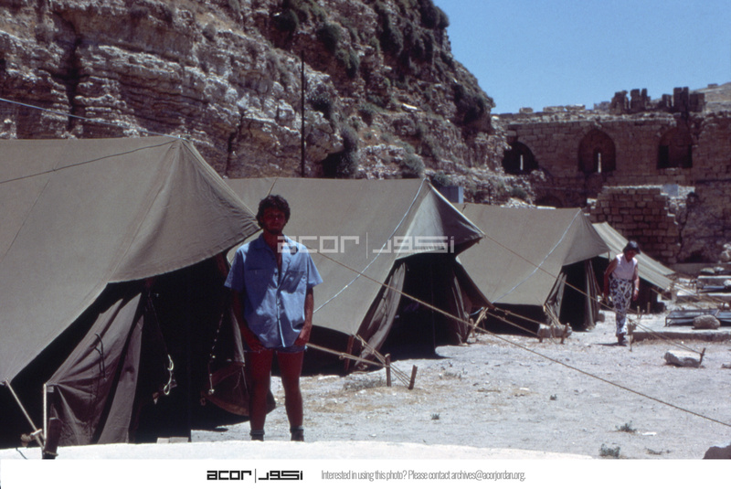 Jordan. Karak, Expedition to the Dead Sea Plain staff member in camp