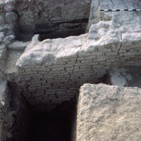 Jordan. Bab edh-Dhra‘ town site, Field XIX.1/2, looking east at buttress and terracing of early Bronze Age III mudbrick walls to prevent erosion and level area for domestic structures
