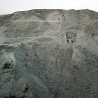 Shows topography of the inner town and erosional problems which begin in the early Bronze Age III and later removed most of the occupational evidence (EDSP notes). Expedition to the Dead Sea Plains dig photography.