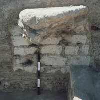 Jordan. Bab edh-Dhra‘ town site, Field XVI.4, mudbrick circular pedestal with stone capping in south balk. Contemporary with possible sanctuary