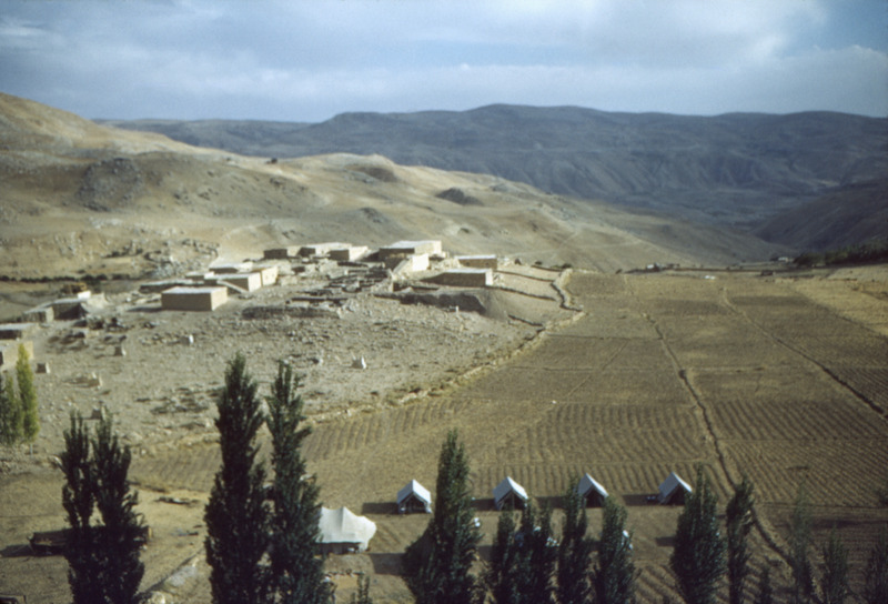 Jordan. Iraq al-Amir, looking south at village and camp from caves