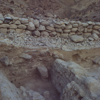Jordan. Bab edh-Dhra‘ town site, Field XIV excavations, looking west at retaining wall to south post