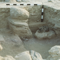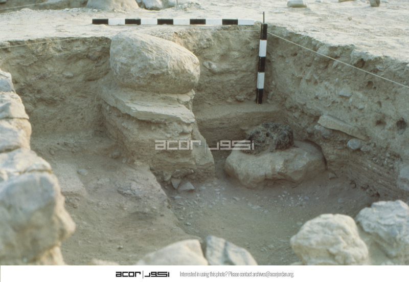 Jordan. Bab edh-Dhra‘ town site, Field XII, looking northeast at remains of wooden pillar inside building