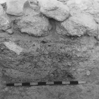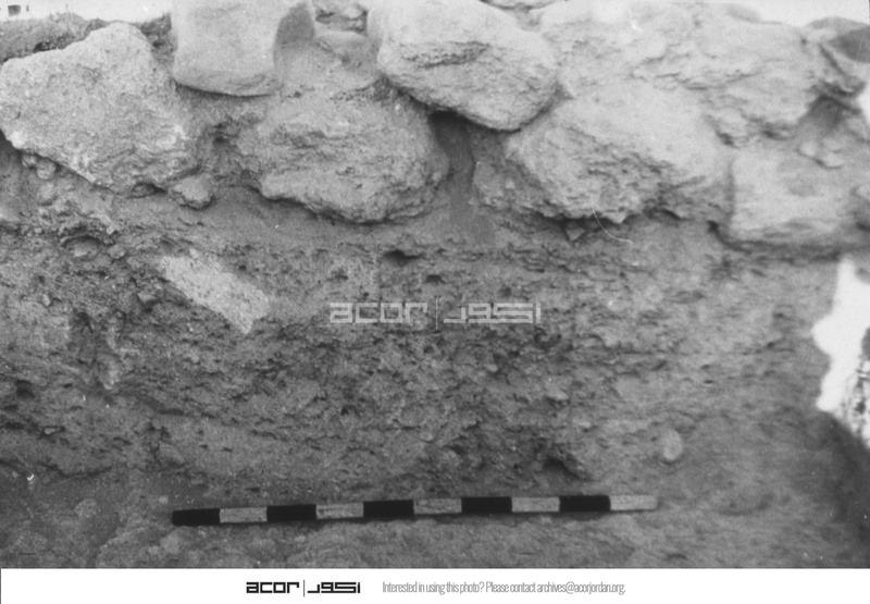 Jordan. Bab edh-Dhra' town site, Field I.4, looking west at west end of wall with brick underneath