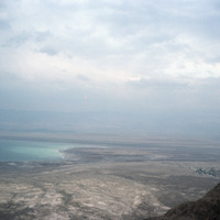 Jordan. Bab edh-Dhra', view across Dead Sea from Masada