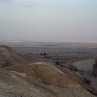 Jordan. Bab edh-Dhra', looking west down Wadi Karak from Field XI