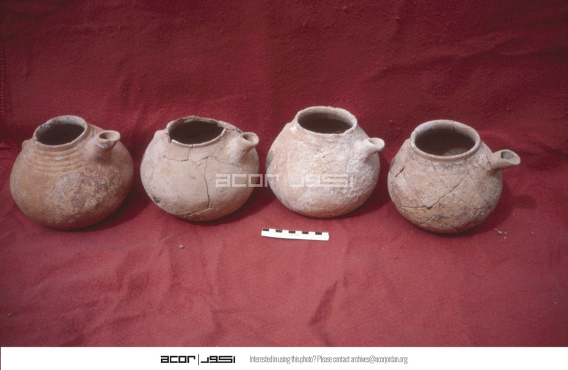 Jordan. Bab edh-Dhra' cemetery, roadside trench tomb pottery photographed at Karak. Teapots 38, 11, 28, 32