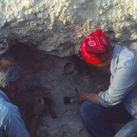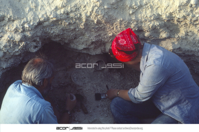 Jordan. Bab edh-Dhra' cemetery, roadside trench tomb. Michael Finnegan and Liza excavating