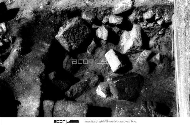 Jordan. Iraq al-Amir, square II.11 approximately a meter down, showing fallen stones of north Qasr al-Abd facade