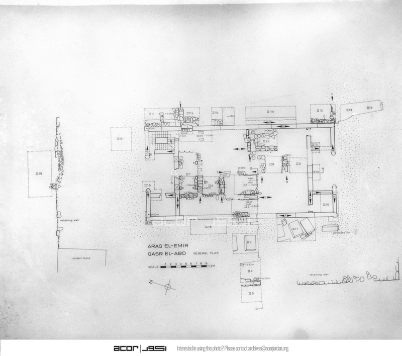 Jordan. Iraq al-Amir, plans of Qasr al-Abd including excavation squares