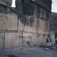 Jordan. Iraq al-Amir, looking south at east side of Qasr al-Abd and feline fountain
