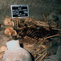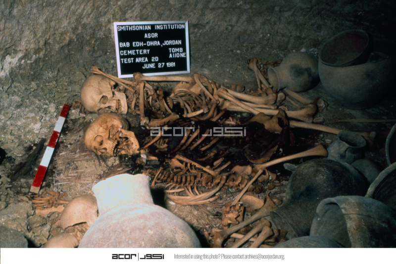Jordan. Bab edh-Dhra', Cemetery A, Tomb A110NE. Articulated burials with remnants of cloth over female skeleton