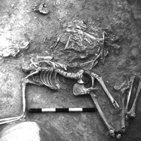Jordan. Bab edh-Dhra', Cemetery A, Tomb A83. Looking east at articulated skeleton