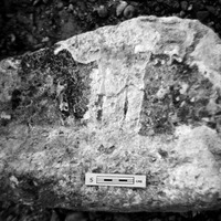 Jordan. Bab edh-Dhra', Cemetery A, Tomb A76E. One of stones blocking the tomb entrance, from bottom of pile