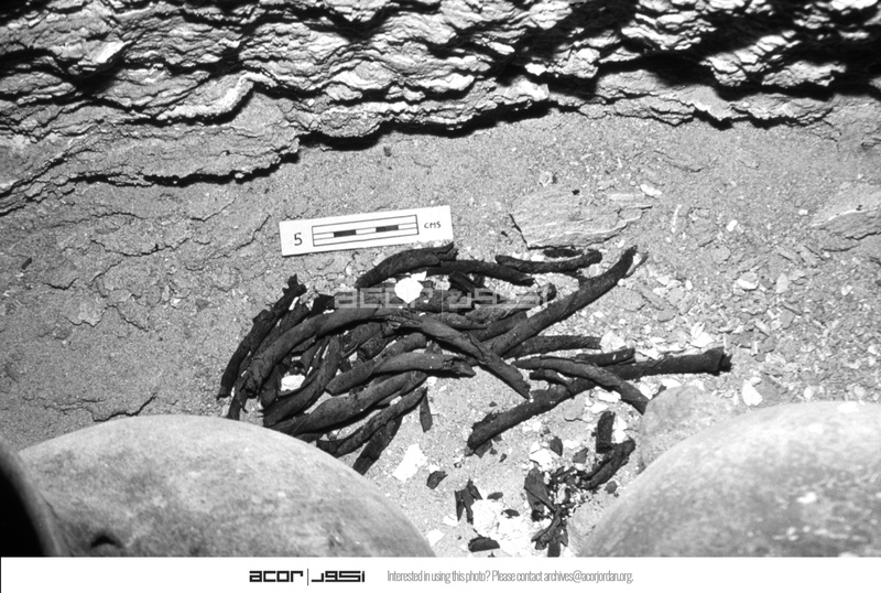Jordan. Bab edh-Dhra', Cemetery A, Tomb A76E. Closeup of fragments of basket coils