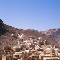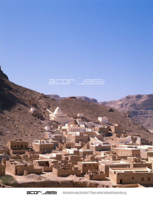 Yemen. Qabr Hud, Hadhramaut, view to town and shrine