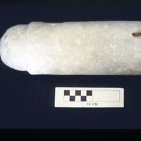 Excavation of the lower church in el-Quweisma, cylindrical colonette