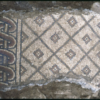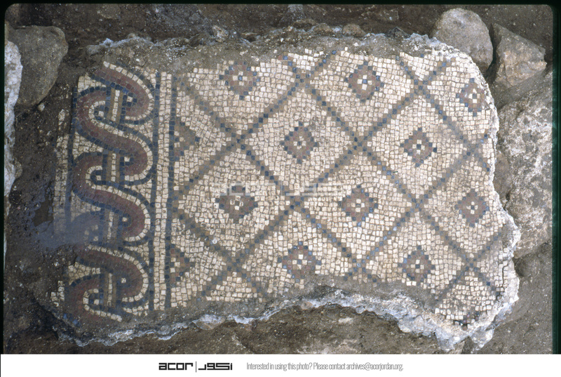 Excavation of the lower church in el-Quweisma, mosaics