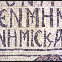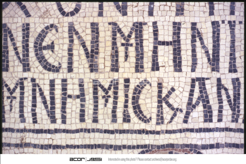 Umm al-Rasas - Detail of Greek inscription in mosaic in Church of St. Stephen