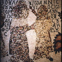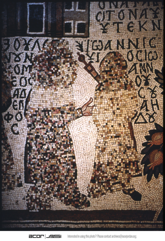 Umm al-Rasas - Church of St. Stephen - mosaic of two people with Greek text