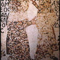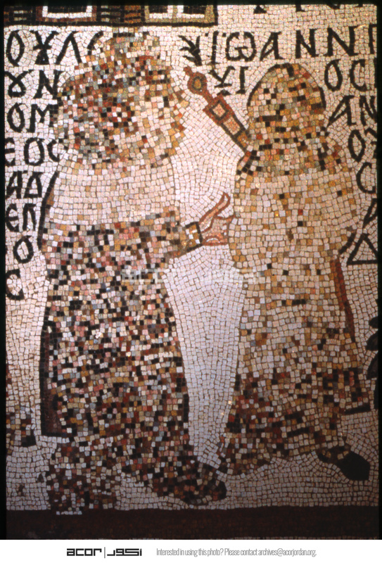 Umm al-Rasas - Church of St. Stephen - mosaic of two people with Greek text