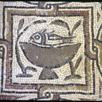 Umm er-Rasas - mosaic depicting fish on a plate in Church of St. Stephen