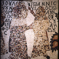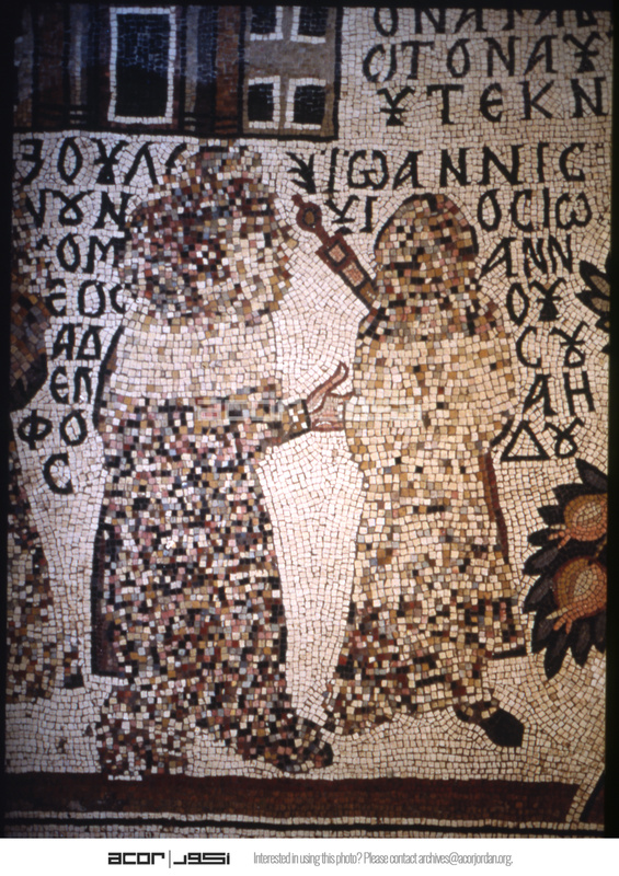Umm al-Rasas - Church of St. Stephen - mosaic of two people with Greek text