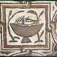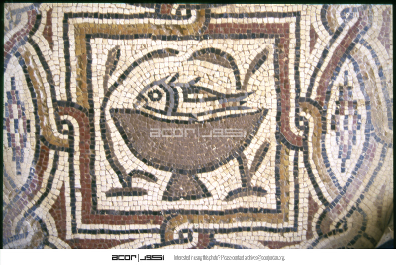 Umm er-Rasas - mosaic depicting fish on a plate in Church of St. Stephen