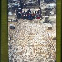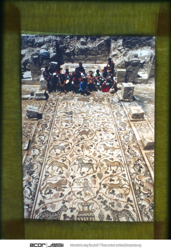 Umm al-Rasas - Church of the Lions with mosaic floor and excavation team
